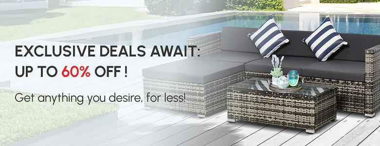 Outsunny 5 Piece Modern Outdoor Patio Rattan Wicker Furniture Patio Dining Table Stool Chaise Lounge Set