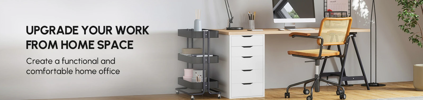 Keep books, documents and everyday essentials organised with open shelving. A bookshelf adds practical storage while helping your workspace feel tidy and visually balanced.