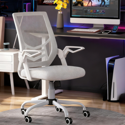 Lightweight mesh supports dynamic work + cooler posture.