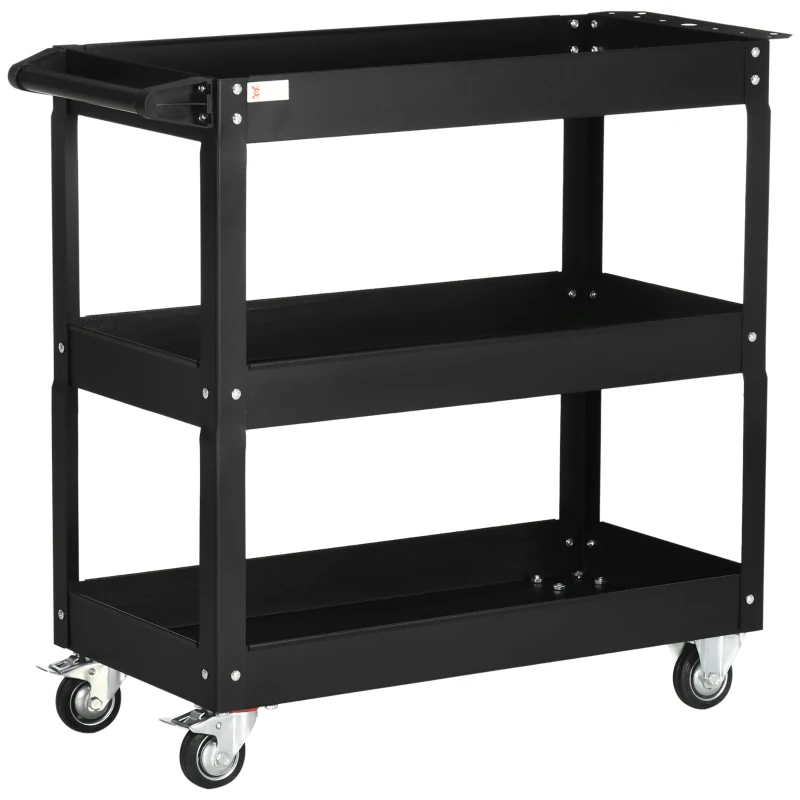 DURHAND 3-tier tool cart, 4 wheels, steel, 83B x 35.3T x 76H cm, Black(m-1)