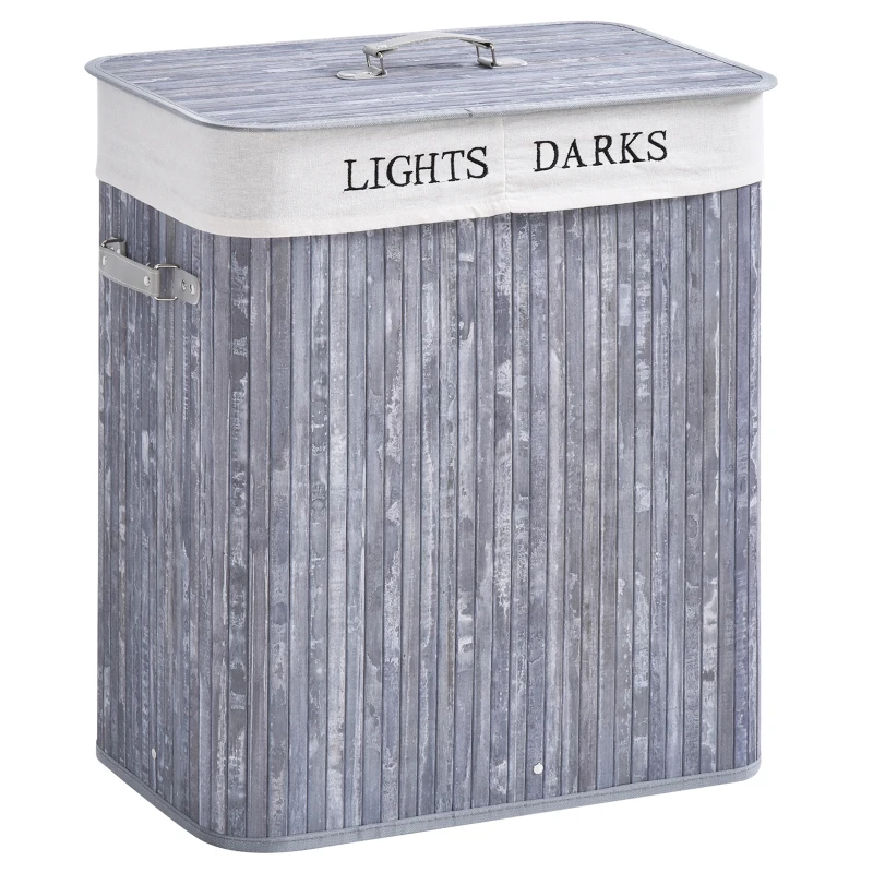 HOMCOM 100L Collapsible Natural Wood Laundry Hamper Organizer Clothes Washing Basket Bin Storage Box w/Lid Removable Lining 52x32x63cm, Grey
