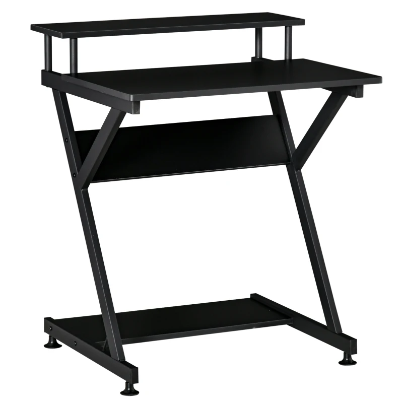HOMCOM Computer Desk with Monitor Shelf and Storage, R Shaped Gaming Study Writing Table for Home Office, Black
