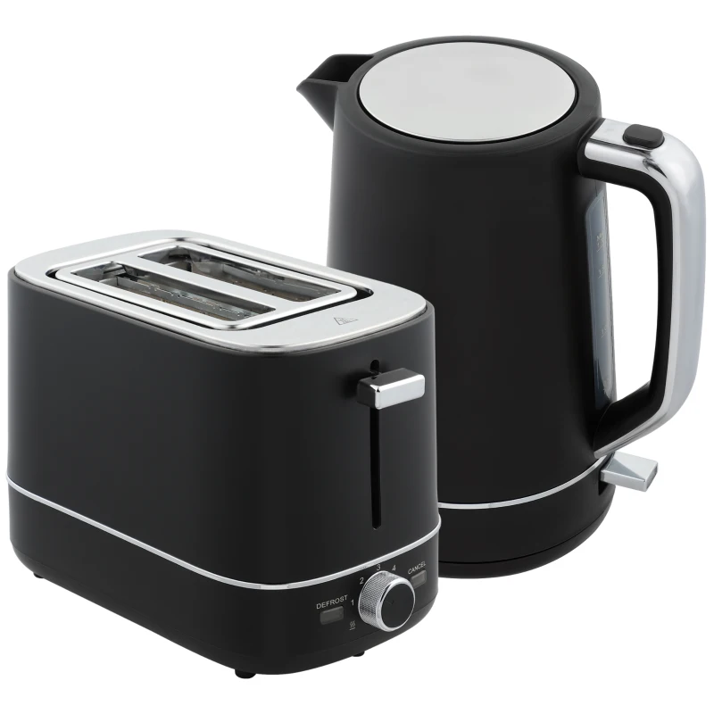 HOMCOM Kettle and Toaster Set, 1.7L 3000W Fast Boil Kettle & 2 Slice Toaster Kitchen Set with 6 Level Browning Controls, Defrost, Reheat, Black