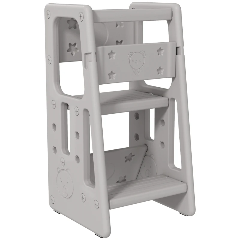 HOMCOM Kids Step Stool, with Adjustable Platform and Non-Slip Mat – Grey