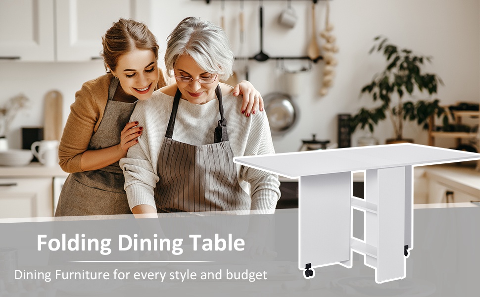 HOMCOM Folding Dining Table, Drop Leaf Table for Small Spaces with 2-tier Shelves, Small Kitchen Table with Rolling Casters, White