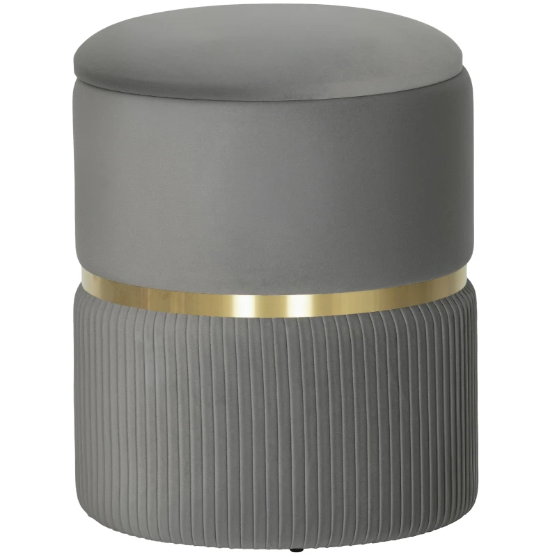 HOMCOM Velvet-Feel Storage Ottoman - Grey