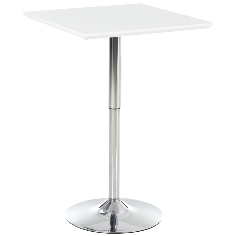 HOMCOM Square Height Adjustable Bar Table Counter Pub Desk with Metal Base for Home Bar, Dining Room, Kitchen, White