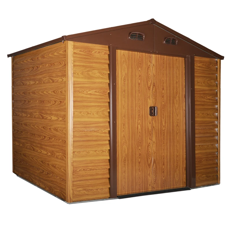 Outsunny Garden Shed Tool Storage Overlap Construction Sliding Door Brown Wood Grain