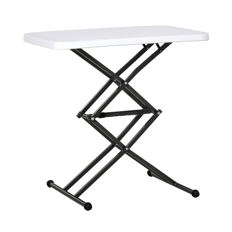 OUTSUNNY Outdoor Patio Coffee Table, Folding Side Table Height Adjustable Metal Frame for Balcony, Deck, Black and White